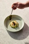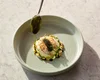 Verdeel alle elementen, inclusief de kaviaar, over de borden en besprenkel met de bieslookolie. Garneer met een takje bieslook of eetbare bloemen.
