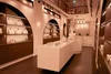 Het interieur is op zichzelf al een beleving, maar ook de ervaring van de producten staat centraal. Bezoekers kunnen de volledige collectie ruiken, aanraken en ervaren. Rond het beeld van de vrouw is een wasbak met handdoeken geplaatst, zodat gasten de producten ter plekke kunnen testen.