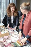 Na het eerste overleg beginnen we met het maken van moodboards, het verzamelen van materiaalstalen en het uitwerken van de tekeningen. Het is natuurlijk geweldig als een voorstel meteen in de smaak valt, maar soms moet het ontwerp bijgestuurd worden. Smaak is tenslotte persoonlijk. Ik kan zelf enorm enthousiast zijn over een bepaald behang, terwijl een ander denkt: wat ís dit? Wanneer ik ze niet kan overtuigen ga ik terug naar de tekentafel. Juist dan is het fijn om met collega’s te sparren. Een frisse blik of ander perspectief kan het verschil maken. Als ik op zoek ben naar iets echt unieks, ga ik graag naar collega Sharon. Zij weet met patronen, vormen en composities visueel krachtige ontwerpen te maken die altijd stijlvol en onderscheidend zijn. Ik vertel haar wat ik in mijn hoofd heb en zij weet dat dan feilloos te vertalen naar beeld.”